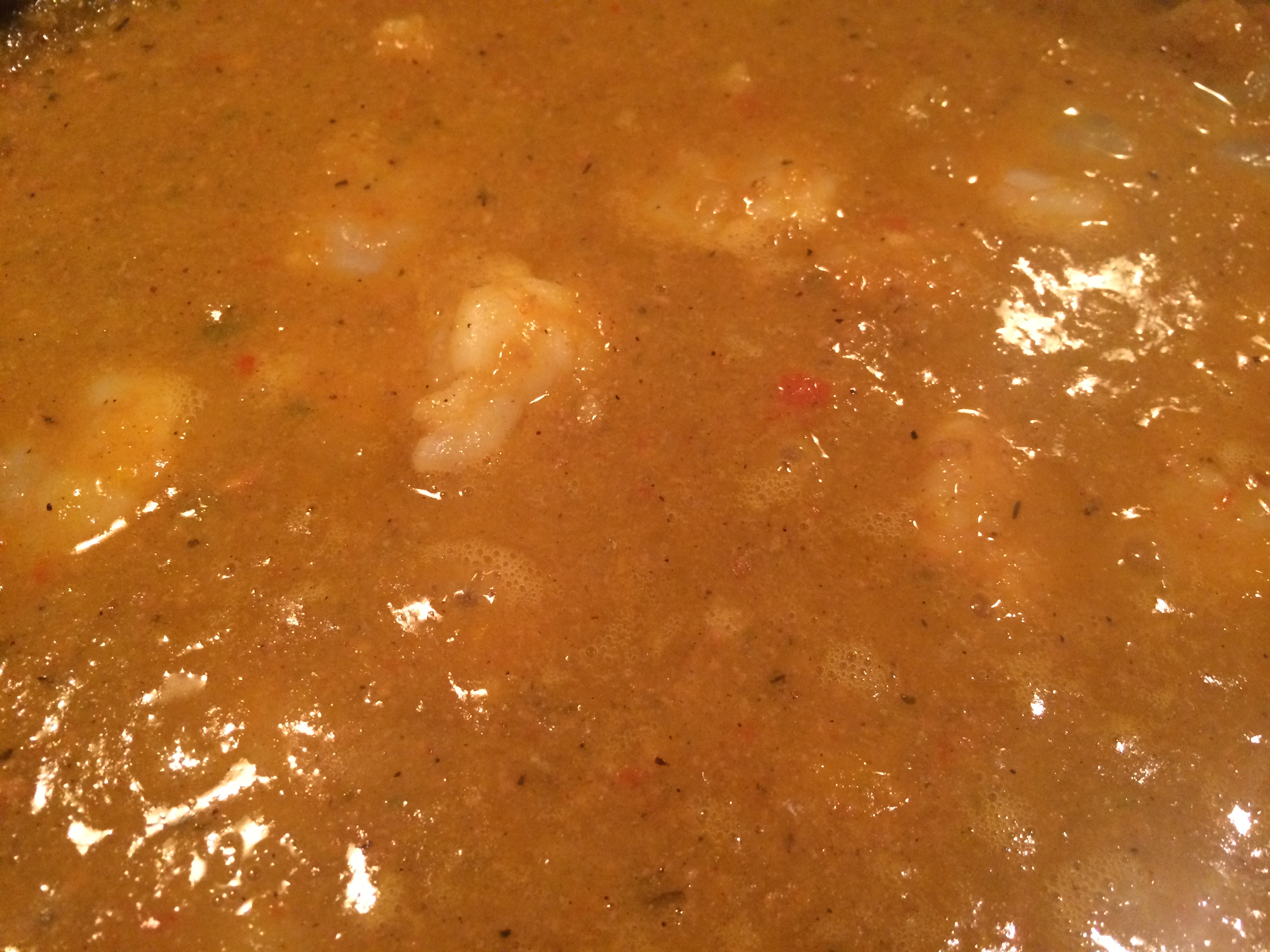- Add shrimp to gravy before serving, and cook until cooked through. They are ready when they have curled into a C shape. Be careful not to overcook—they are overcooked if they curl into a tight C that resembles a curly-q.
